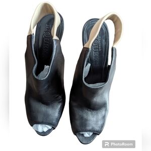 HP. ALEXANDER MCQUEEN Leather Peep Toe Slingback Heels