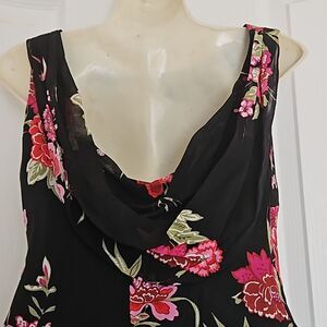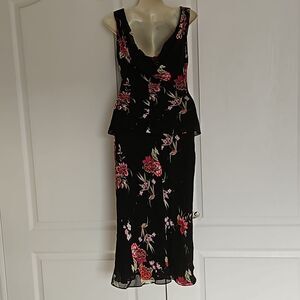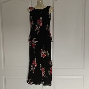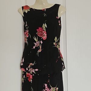 HP🥳 Evan-Picone Floral 2-Piece Top Crow Back & Midi Skirt Black/Pink Size 4P