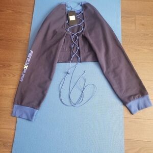 PUMA FENTY PUMA By Rihanna Laced Sweatshirt cuz you stay killing the game. Show up fly with this sweatshirt that have a lace-up on the back, a cool af logo on the sleeves. Size L in evening blue.