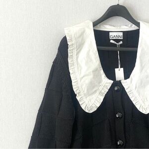 ⭐️HP⭐️ GANNI Smiley Face Oversized-Collar Basketweave Cardigan