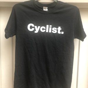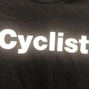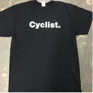 Black T-Shirt emblazoned with the statement "Cyclist" in white. Shout out to the world that you love to cycle. Perfect shirt to relax in or wear when out and about. Comfortable 100% cotton. SIDI written on the back.