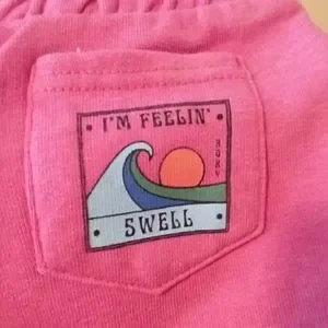 Stylish drawstring shorts with Roxy logo on leg and back pocket graphic that reads "feeling swell".