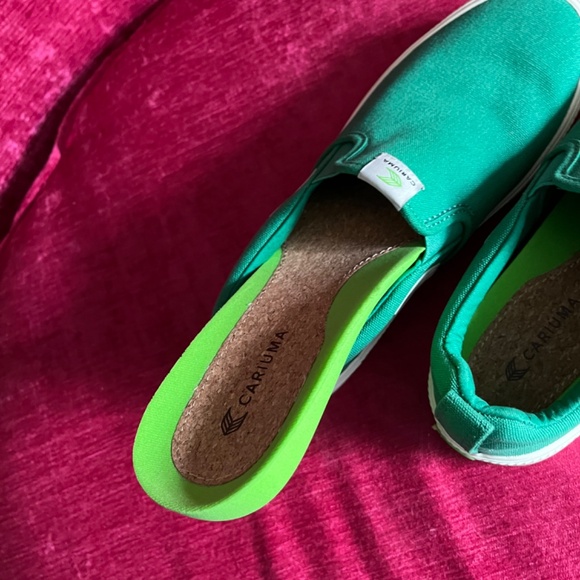 From sustainable shoe brand Cariuma, cute slip-on sneakers in Kelly green. 100% vegan. Natural slip resistant rubber sole, organic cotton upper. Plant-based and cork insole. NWOT, no box. Women’s 7.