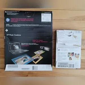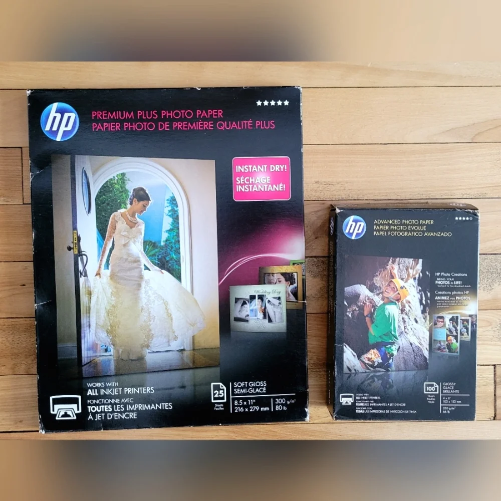 Set of 2 HP photo paper. One pack is brand new the small pack has been open and some sheets used but the majority remain see photo.