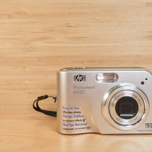 The HP Photosmart M525 is a 6.0-megapixel digital camera with a compact point-and-shoot design. Perfect for everyday photography, it features an easy-to-use interface, built-in flash, and reliable image quality.