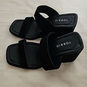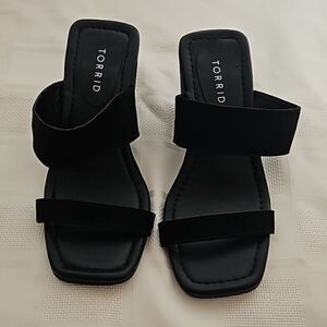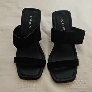 HP Torrid Women's Square Toe Demi Slip-On Wedge Sandals 6.5 Black