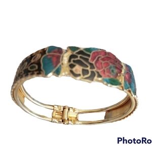 Gold plated bracelet with Embossed floral artwork. Excellent preowned condition