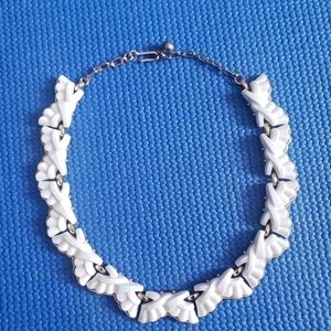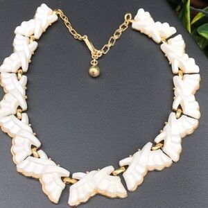 Trifari vintage necklace ruffled white thermoset panels in summer white. Good preowned condition. Length is 12" long