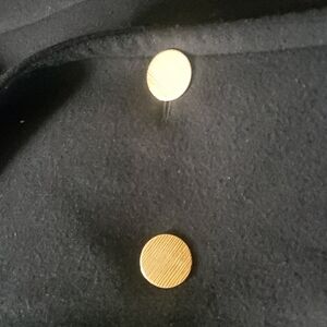 Double gold plated button closure at waist.