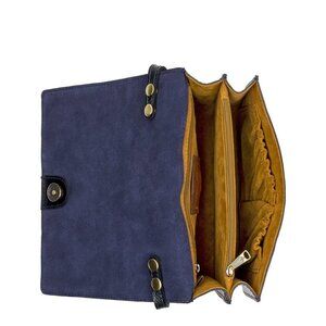Interior: 3 compartments, back compartment has zip pocket, center zip compartment, front compartment has 6 credit card slots, 2 slip pockets. Faux suede lining, 100% polyester