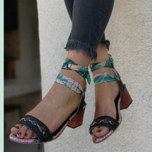 Sustainable pineapple leather vegan sandals with acacia (wood) heel and real GEM stone! Luxury!