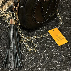 ⭐️🖤Omg! Stunning craftsmanship ⭐️Genuine Beautiful Leather, Rockstud detail tassel chain straps crossbody bag. Fits an iPhone 16 for reference ⭐️🖤New with tags.