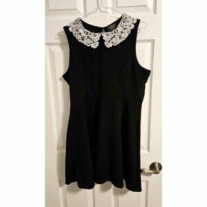 "Looking for your new black dress with a hint of witchy vibes? Look no further! This black textured dress has a contrasting white lace collar and back single cloth button closure. Perfect!"