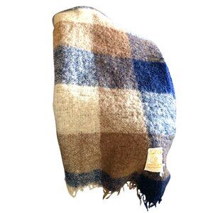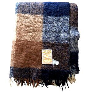 HUDSON BAY Blue Brown PLAID MOHAIR Blanket