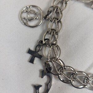 HUDSON BAY CO STERLING SILVER Large Link CHARM BRACELET W/ 7 CHARMS Vintage
