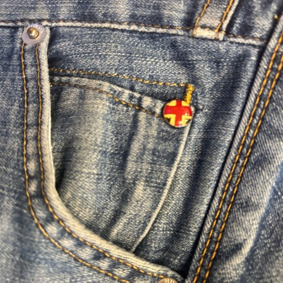 Low rise skinny with ripped knees which is different then stock photos. Also light wash then stock photo.