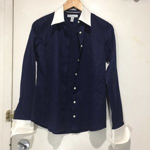 Hudson Room Classic Fitted Blouse, Lightweight Size 8, Color Blue, 97 Cotton, 3% Spandex, White Collar and Cuffs, Closure Buttons, in Good Condition, Relax Fit, Great Look, Great Fitt.