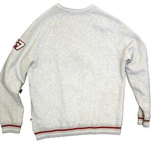 Hudson's Bay have been around for over 300 years as a trading company. This sweater is a grey, super soft sweater with the iconic Hudson's Bay 4 colour stripe logo as a tag. Features the word 'Canada' along with a fabric stitched red Maple Leaf in the center front. The letter "C" is patched onto the left sleeve, and the number "67" is patched onto the right sleeve, referencing Canada's Confederation in 1867. Red and white stripes adorn the cuffs and hem of the sweatshirt, adding to the overall patriotic Canadian design. In very good pre-owned condition!