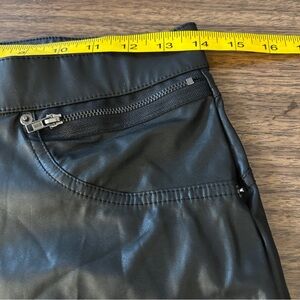 Sleek black leggings with a shiny finish. Perfect for versatile styling.