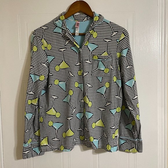 HUE Martini Glass Checkered Pyjama Button Down Shirt