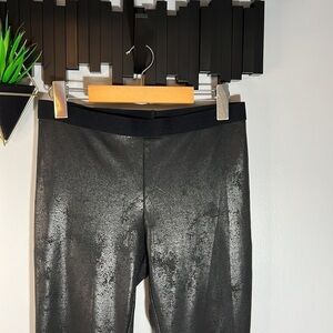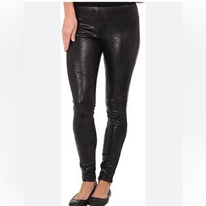 HUE Distressed Leatherette Leggings, Black Size Medium EUC