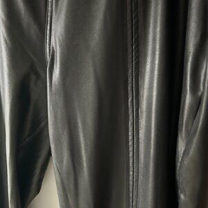 HUE Faux-leather leggings. Great condition, barely worn. Cool front seam with a zipper detail at the bottom of each leg.