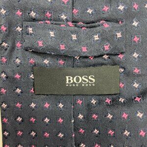 HUGO BOSS 100% SILK Made in Italy Red White & Blue Tie 3.75"