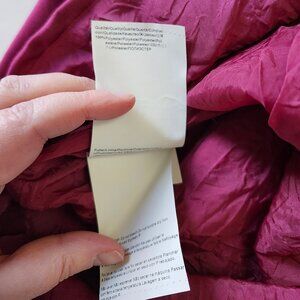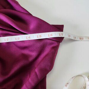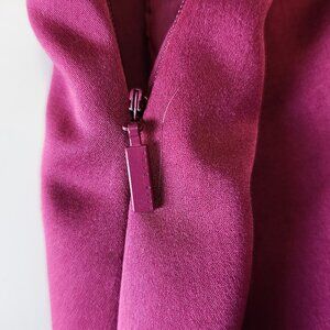 Hugo Boss one shoulder drape dress. Side zipper. Fully lined. Belt loops but no belt. Beautiful raspberry colour. Loved but still in good condition.