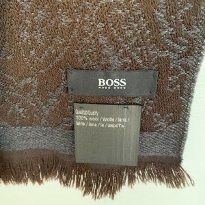 HUGO BOSS Paisley Brown Blue Wool Scarf