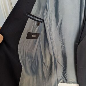 wool navy blue striped Hugo boss suit blazer size 44