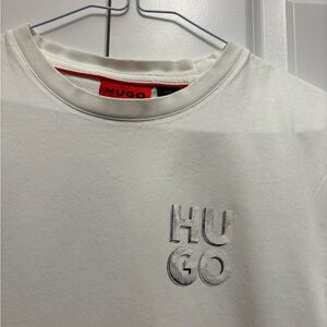 Stylish HUGO tee in cream. Soft fabric. Ideal for casual wear.