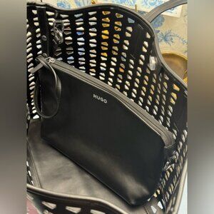 🆕 HUGO 🧿 NWT CHRIS Laser Cut Shoulder Bag Set - Tote Bag & Pouch - Black