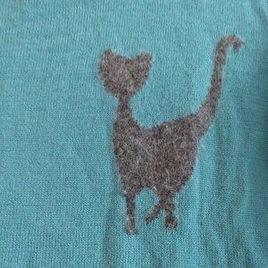 HUMAN WOMAN Y2K Cat Knit Cropped Sweater Top Teal Gray - Size M