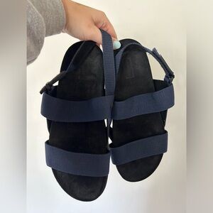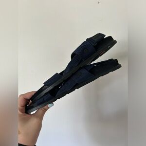 Open toe - Webbed strap construction - Hook-and-loop heel strap closure - Molded cushioned suede lined insole - Made in Italy
