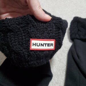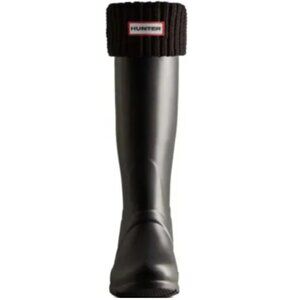 HUNTER Stitch Cable Knit Roll Cuff Original Sock Tall Boot Black Women's Large
