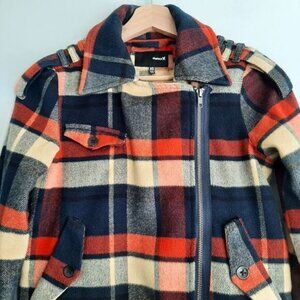 HURLEY / Quiet Rebel Moto Plaid Blanket Fleece Biker Full Zip Jacket Sz XS