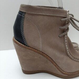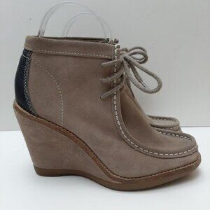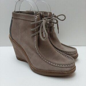 HUSH PUPPIES / Cignet Genuine Suede LaceUp Wedge Heel Ankle Bootie Taupe Tan 6.5