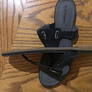 HUSH PUPPIES WOMENS BLACK LEATHER THONG SANDALS SIZE US11