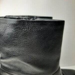 HUSH PUPPIES Waterproof Genuine Leather Square Toe Ankle Bootie Black Sz 5.5 M