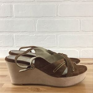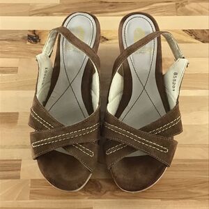 HUSH Puppies brown suede heeled sling back sandals wedges comfy stylish size 7