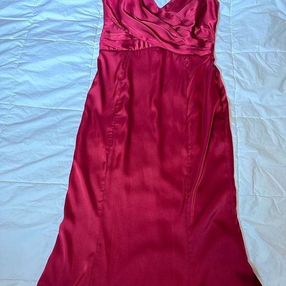 HUSH women's dress maxi mermaid gown red satin vneck spaghetti strap size 4