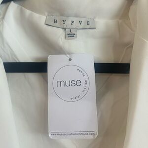 HYFVE Muse Brand. Size L, BNWT Women's White Vest, pockets, tortoise buttons