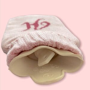 This cute NWOT hot water bottle features a cozy knitted cover with the letter H in burgundy