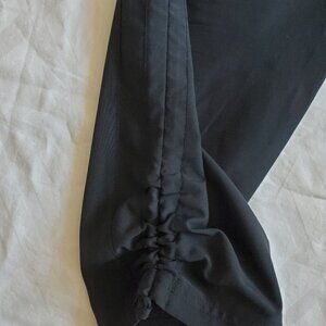 Black Lightweight pull on pants with strings in the legs to adust the length slightly.