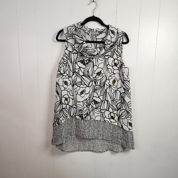Habitat Clothes to Live In Sleeveless Tunic Cowl Daisy White Black Lagenlook