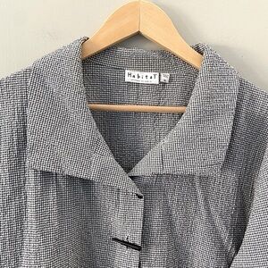 Habitat Gingham Button Front Cropped Sleeve Flowy Textured Black/White B…