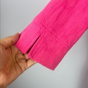 This stylish top from Habitat showcases a vibrant pink hue with a boxy silhouette and 3/4 sleeves. The ruffled collar adds a touch of elegance, making it a versatile choice for various occasions.