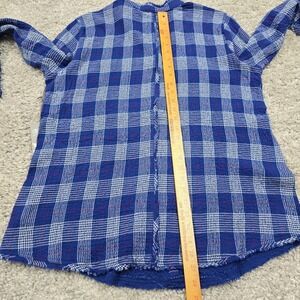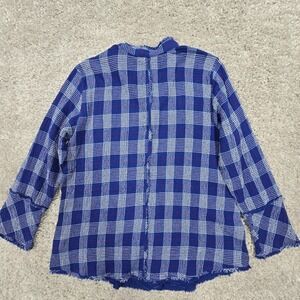 Habitat Womens Top Small Blue Button Up Plaid Long Sleeve Gauzy Lagenlook
