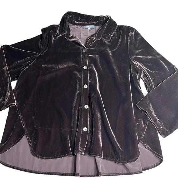 Habitat crushed velvet swing shirt.Brown,bracelet sleeves,mother of pearl NWT