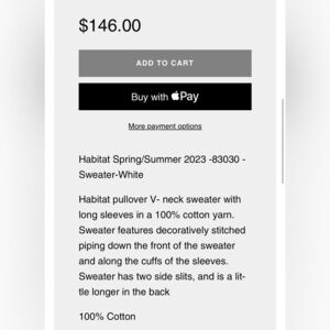 Habitat sweater,women,PTP 19.5” white cotton pull over,v neck,trim,EC